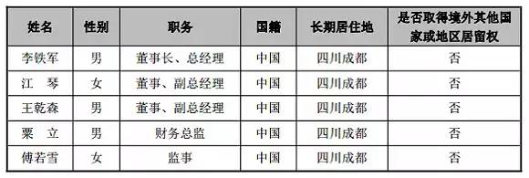 资料显示,李铁军2017年3月至今,任川发展资本运营部总经理,并任国辰产业投资基金管理有限公司投决会委员,还曾有在四川证监局的任职经历。宋贵祥2018年4月至今,任川发展财务管理部经理,并担任四川省城乡建设投资有限责任公司董事、财务总监,四川发展国瑞矿业投资有限责任公司财务总监。