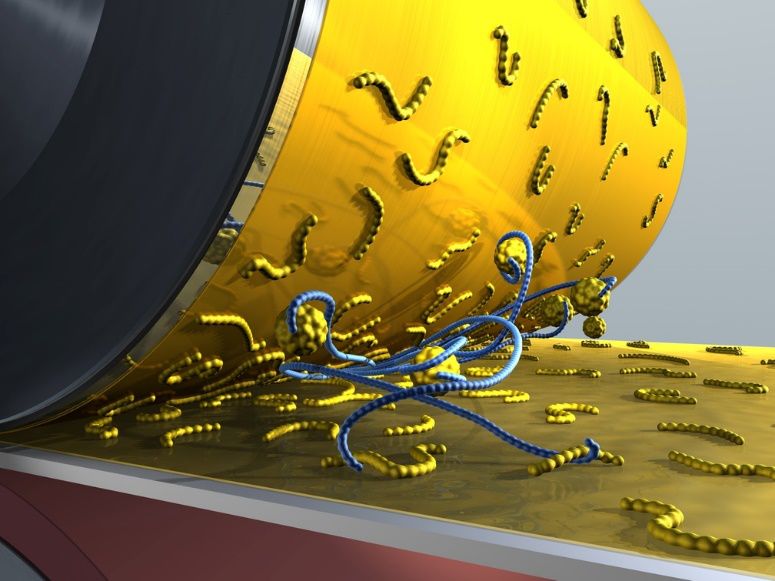 图解:独特的抗雾化添加剂能在基材表面形成缠绕效应,有效预防高速涂布情况下雾化的形成。