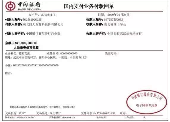 1月24日,在武汉多家医院防护用品告急的情况下,回天新材董事长章锋第一时间就以个人名义通过湖北省红十字会向武汉、襄阳的医院定向捐赠100万元,支持医院采购医疗设备与物资抗击疫情。