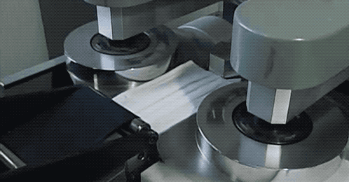 口罩的单个裁断和缝边,大多是全自动无人工的处理。
