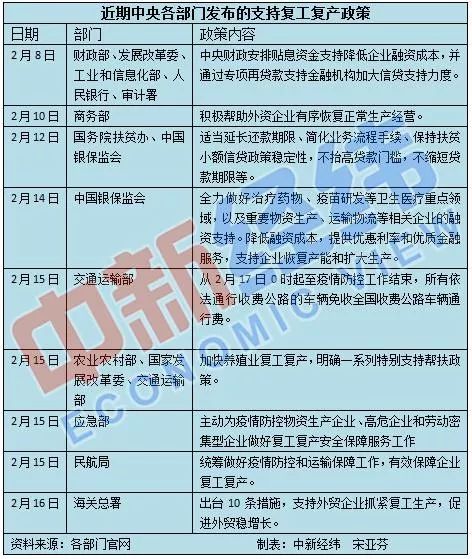 另外,商务部、工信部、农业农村部、国家发展改革委、交通运输部、最高法、海关总署、民航局等也分别就各自领域的工作重点发布通知支持企业复工复产。