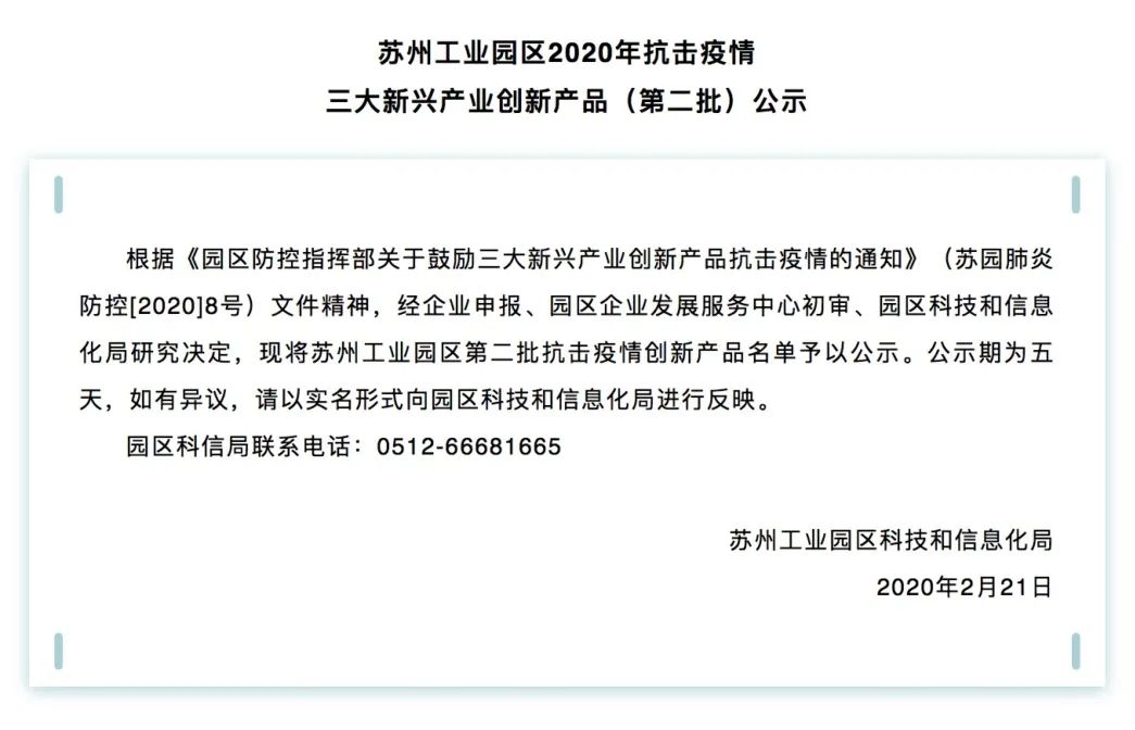 新冠疫情牵动着全国人民的心,在这样一个特殊时期,苏州工业园区全力以赴开展新型冠状病毒感染的肺炎疫情防控工作,为积极发挥科技企业和科技创新产品作用,凝聚合力、团结一致,进一步打好疫情防控阻击战,鼓励推动 生物医药、人工智能和纳米技术应用三大新兴产业创新产品在抗击疫情中的应用, 苏州金枪新材料股份有限公司(简称“金枪新材”)荣获第二批抗疫创新产品。