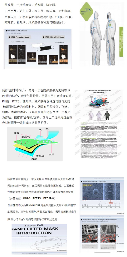 面对疫情,金枪新材勇挑重担、快速响应、重组产能,在做好员工自身防疫的同时全面服务全国防疫产品。公司生产的环保型PUR热熔胶正是各类医用无纺布及相关复合面料生产所必须的关键原材料,使用PUR热熔胶复合的基布材料具备阻隔液体、飞沫、细菌、病毒,且相比普通织物具有更好的透气性与柔韧性,更加的安全、环保、舒适。