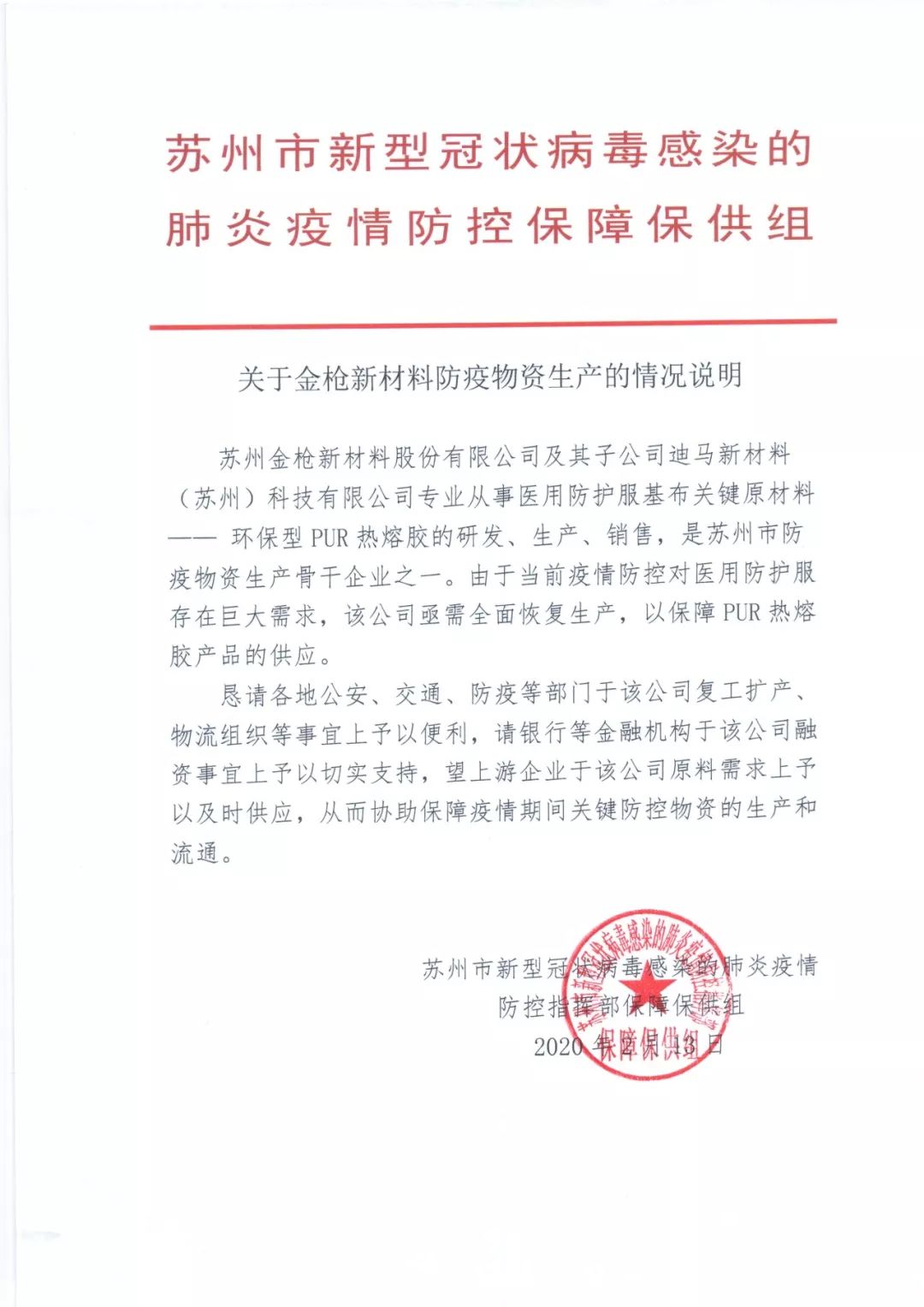 金枪迪马被列为苏州市防疫物资生产骨干企业