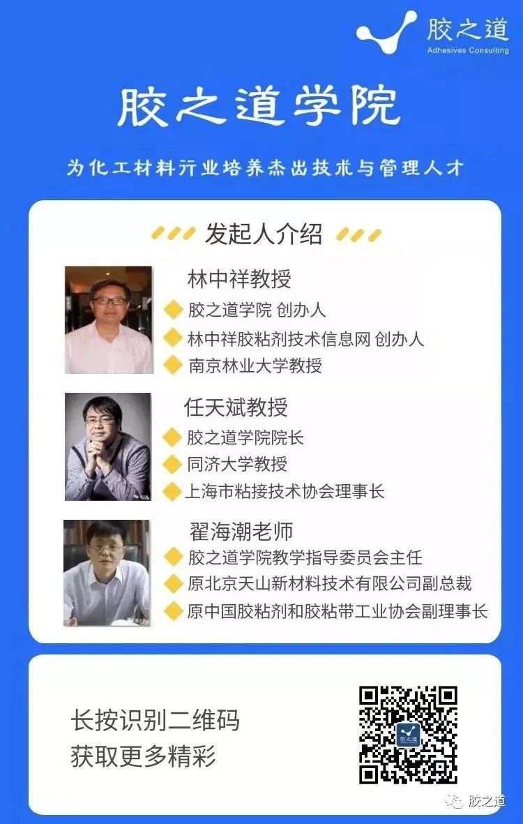 直播精彩回顾: 1.《直播回看》介绍胶粘剂公益咨询顾问团A8组合 2.《直播回看》林中祥教授对胶黏剂行业的思考 3.《直播回看》增粘树脂在PUR中的应用 4.《直播回看》汽车轻量化与粘接剂应用技术的机遇和挑战 5.《直播回看》国外胶粘剂的现状和发展趋势