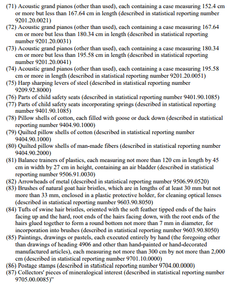 此次获得有效期延长至2020年12月31日的共涉及67个税号87个品项商品。具体如下: