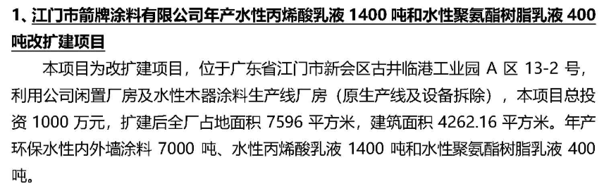 年产水性丙烯酸乳液1400吨等项目
