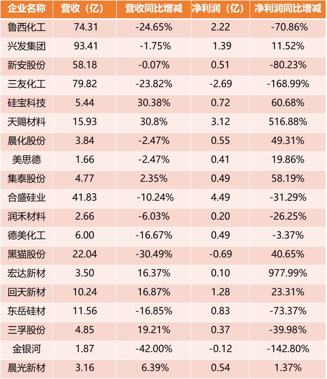 2020上半年,实现营收、利润双增长的企业有:硅宝科技、天赐材料、集泰股份、宏达新材、回天新材、晨光新材。