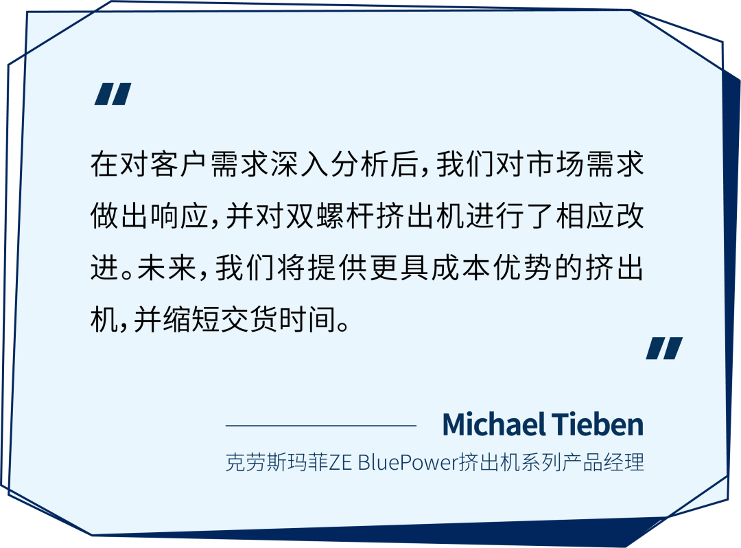 日前,克劳斯玛菲推出全新设计的ZE 28 BluePower高性能实验室挤出机。重新设计优化后的ZE 28挤出机拥有众多独特的卖点,各个方面均能够轻松满足使用者提出的更高要求—即高效率、高经济性、高利用率和更优质的产品品质。