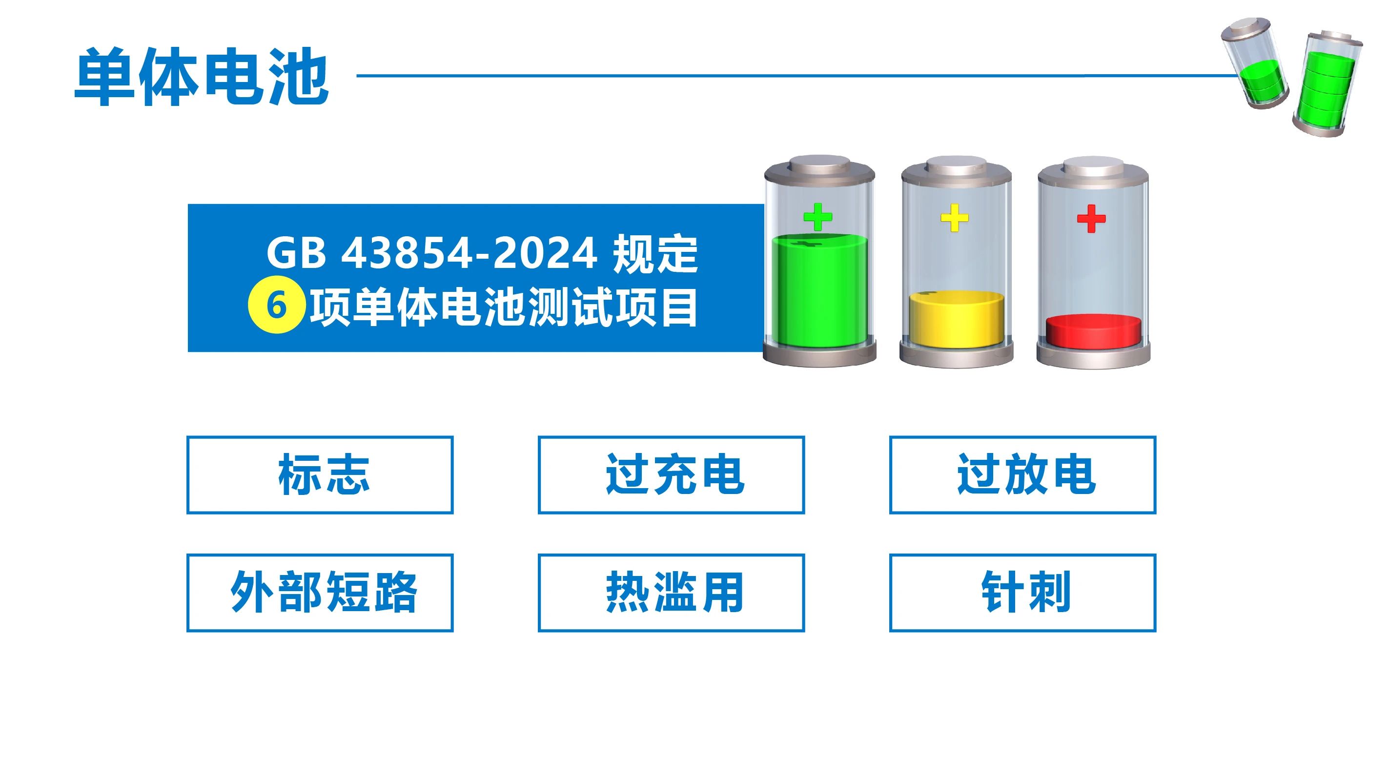 【重点解析】从单体电池和电池组两个层面规定了产品的安全要求和试验方法。