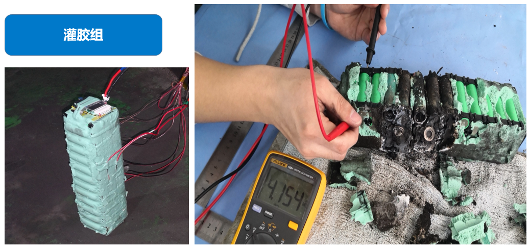 △灌胶组:模组外观状态基本良好,个别电芯失效