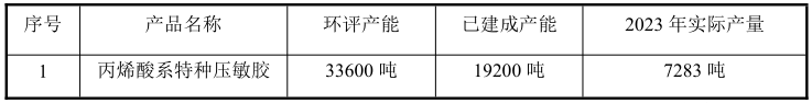 注:根据企业提供资料,目前已建成部分设计产能为年产 19200 吨,2023 年实际产量为