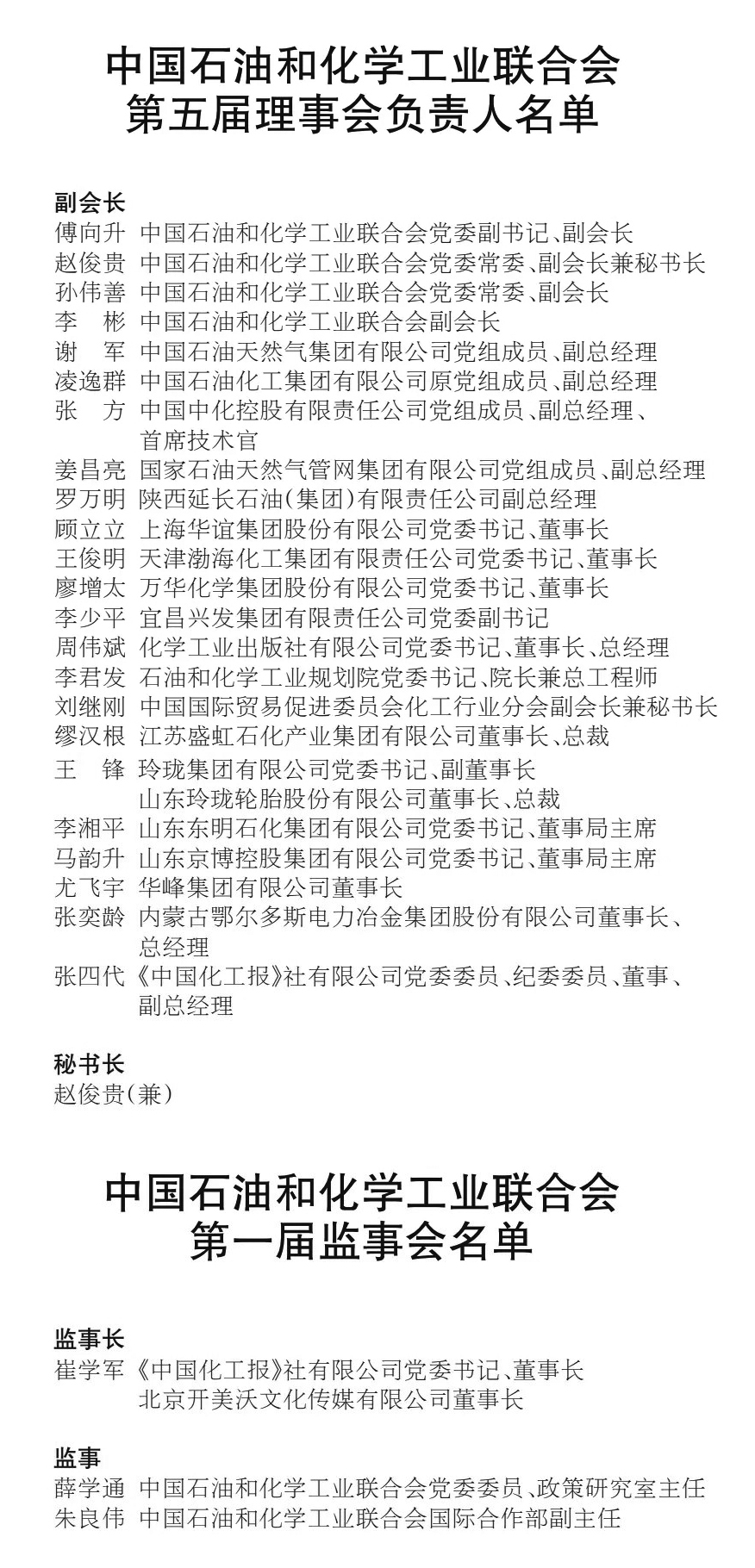 中国石油和化学工业联合会第五次会员大会暨第五届一次理事会议在北京召开。十届全国人大常委会副委员长顾秀莲,原化工部副部长、石化联合会原会长李勇武,中央社会工作部二局副局长(主持工作)方长安,石化联合会第四届理事会会长李寿生,石化联合会党委书记李云鹏等出席,石化联合会党委副书记、副会长傅向升主持会议。会议审议通过了石化联合会第四届理事会工作报告、第四届理事会会费收支情况报告、修改章程议案的说明等;选举产生第五届理事会理事、常务理事和负责人,以及第一届监事会。