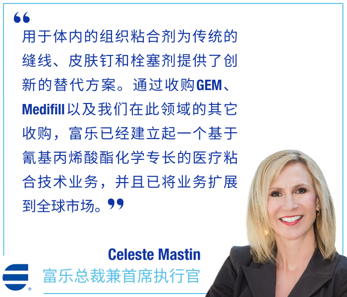 作为一家专业的胶粘剂和密封剂制造商,富乐在医用胶领域不断投入,通过积极整合资源,在手术和伤口护理等医疗器械领域提供了丰富的解决方案,并将持续创新。