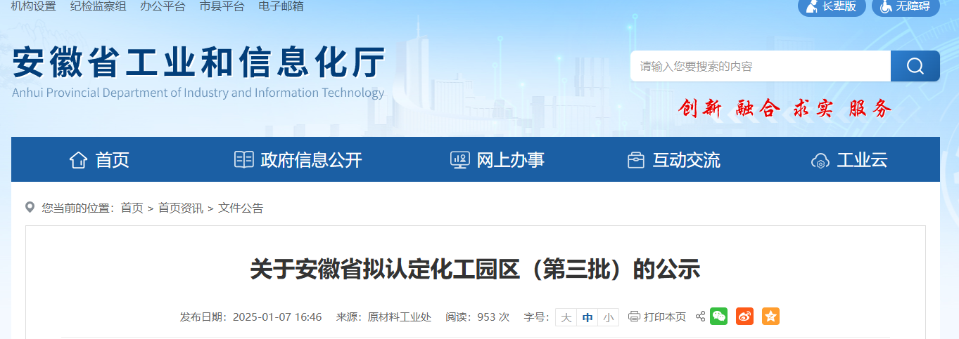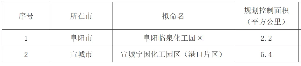 2022年9月,安徽省化工园区名单(第二批)(2家)公示: