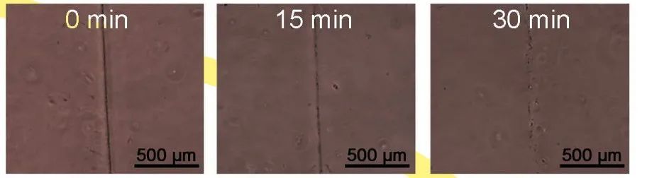 此外,PDA中邻苯二酚结构,不但可以提供对不同基材的粘附能力,它们彼此之间的π-π堆积和氢键作用,也赋予了水凝胶的自修复和拉伸恢复的能力。