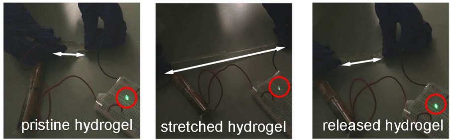 威斯康星大学麦迪逊分校和华南理工大学的科研团队合作研发出一种具有弹性体性能的可自愈超黏水凝胶,可应用于检测人体运动的应变传感器。