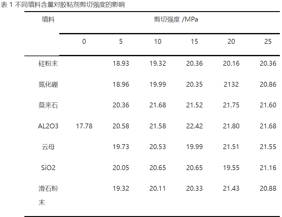 2)无机填料可以降低环氧胶黏剂的体积收缩率,减少环氧胶黏剂的内应力,从而提高了对界面的附着力。