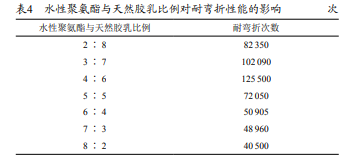 2.2 水性聚氨酯与天然胶乳比例对耐弯折性能的影响