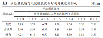 2.1 水性聚氨酯与天然胶乳比例对剥离强度的影响