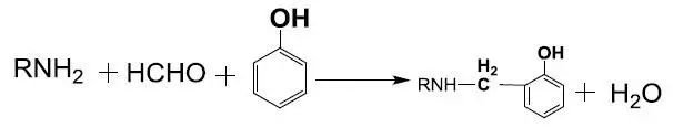 曼尼斯反应(Mannich reaction)为多元胺和甲醛、苯酚缩合三分子缩合。