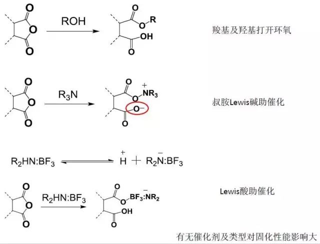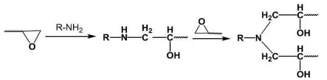 环氧基按阳离子或阴离子聚合机理进行固化,如叔胺、咪唑、三氟化硼络合物