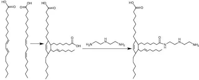 然后2分子与DETA(二乙烯三胺)进行酰胺化反应挥发性毒性很小