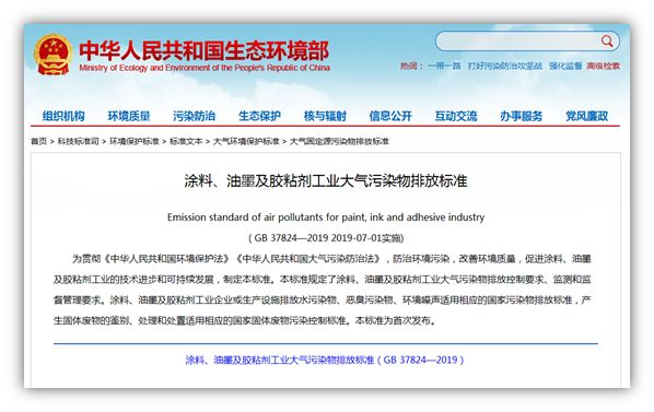 《涂料、油墨及胶粘剂工业大气污染物排放标准》(GB 37824-2019)