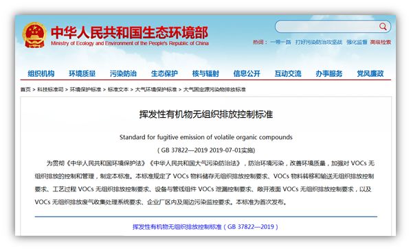 《挥发性有机物无组织排放控制标准》(GB 37822-2019)