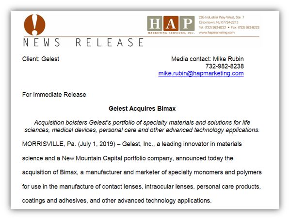 美国当地时间2019年7月1日,Gelest有机硅公司宣布收购Bimax公司。