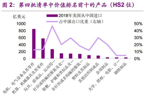 具体来看,第四批征税清单集中了大量的消费品,其中排名第一的是电机、电气设备及其零件。