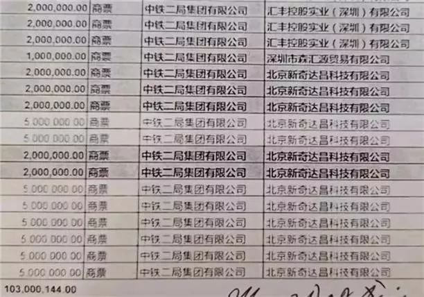 ▲(部分中铁二局假票名单,涉案金额超1亿元)