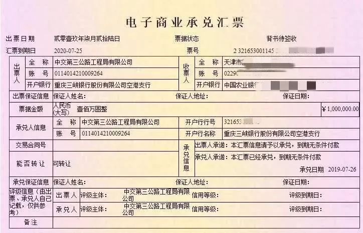 无独有偶,这次被曝光的大量假承兑汇票,假冒的是重庆三峡银行股份有限公司空港支行以中交第三公路工程局有限公司名义出具的电子商业承兑汇票。