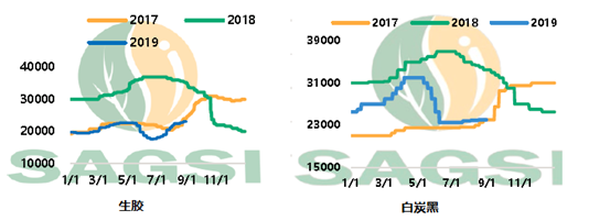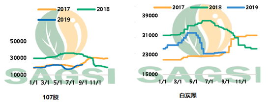 生产HTV的主要原料有生胶、白炭黑、催化剂、颜料等,其中生胶和白炭黑是生产成本的主要因素。截止到2019年8月,生胶和白炭黑的价格经过一番市场波动后基本维持在2018年末的价格水平。随着2019年建筑业的稳健增长,以及随之推动的彩电、空调、冰箱等家电行业消费增长,2019年我国HTV市场还比较乐观。