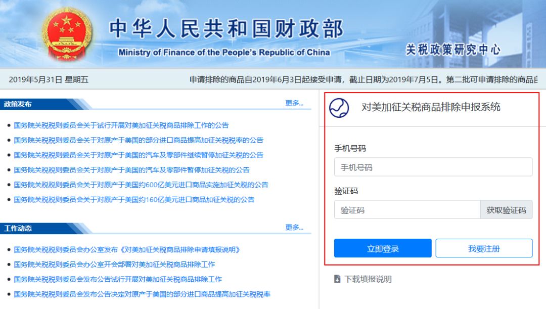 8月28日上午,财政部关税司发布“对美加征关税商品(第二批)排除申报系统于2019年8月28日开放”的公告,今天起,在华企业及协(商)会可通过财政部关税政策研究中心网站(https://gszx.mof.gov.cn)注册、登录,并开始填写排除申请。9月2日,排除申报系统正式接受第二批商品排除申请。