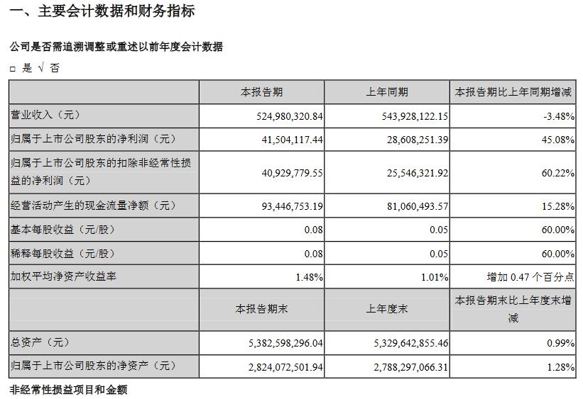 营收:5.25亿元 同比变化:-3.48%