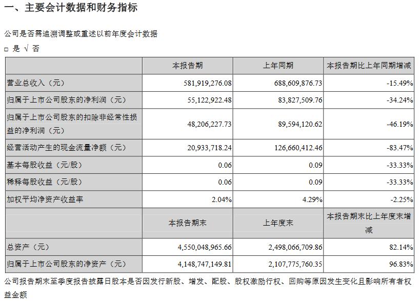营收:5.82亿元 同比变化:-15.49%