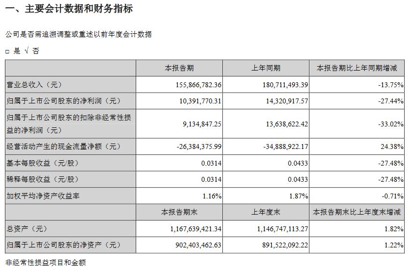 营收:1.56亿元 同比变化:-13.75%