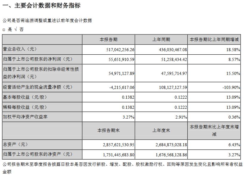 营收:5.17亿元 同比变化:18.58%