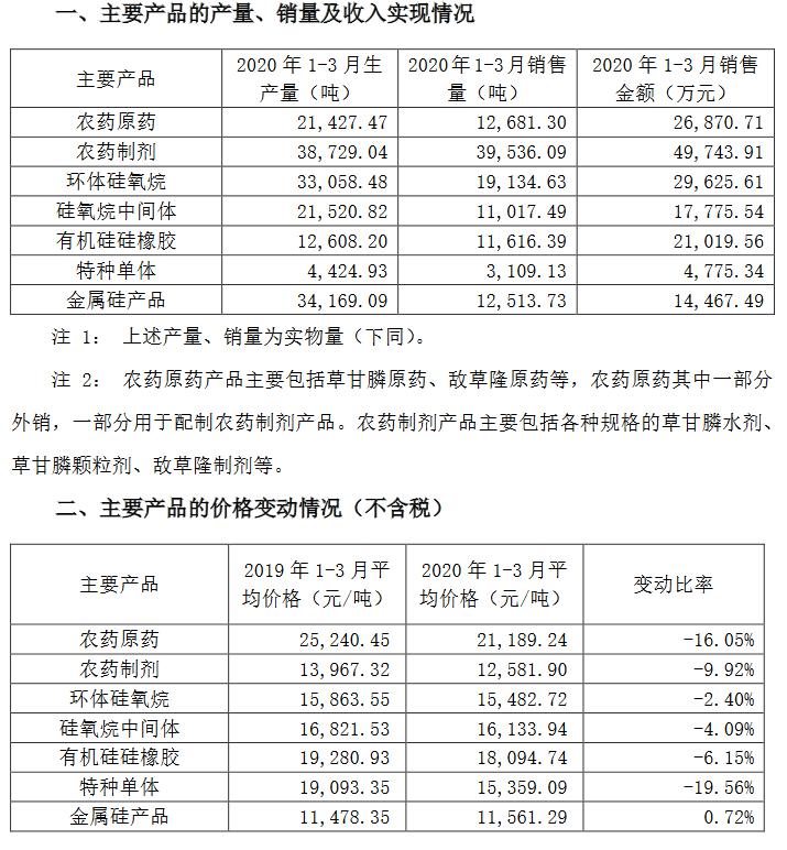 近日,有机硅企业纷纷发布2020年第一季度业绩报告。受疫情冲击和产品价格下滑的影响,多家有机硅企业一季度业绩大幅下滑,尤其是上游企业,净利润几乎全面负增长。以下为各企业一季度具体情况: