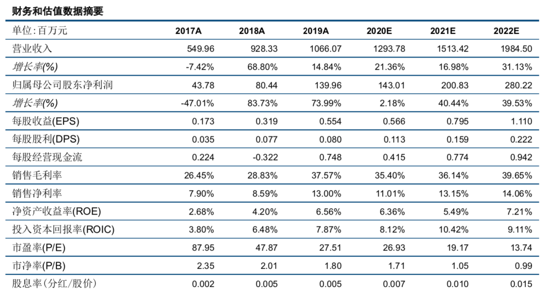 原材料成本下降增厚业绩弹性,现金流大幅改善。2019年原材料价格下降,综合毛利率37.57%,同比+8.74pct,同时公司加大市场拓展、研发投入,费用率有所提升,全年净利率13%,同比+4.41pct。预计未来原材料价格保持稳定,有利于业绩释放。19年经营活动现金流净额1.89亿,去年同期-8125万元,大幅改善。