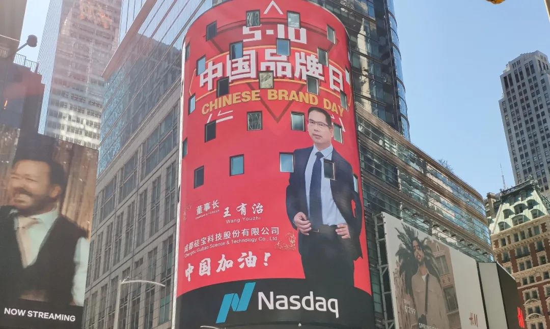 硅宝科技董事长王有治携公司旗下产品荣登美国纳斯达克大屏