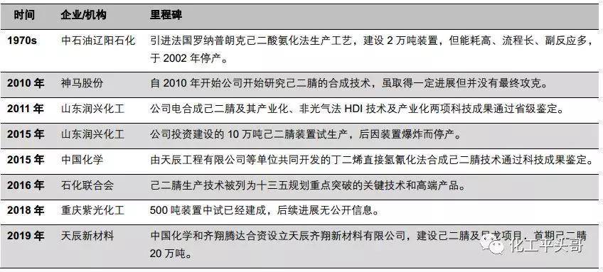 ● 我国以前没有己二腈工业化生产装置,己二腈的需求一直大部依赖进口,天辰齐翔尼龙新材料项目采用天辰自主研发己二腈技术,也是国内首创的具有自主知识产权的专利技术。