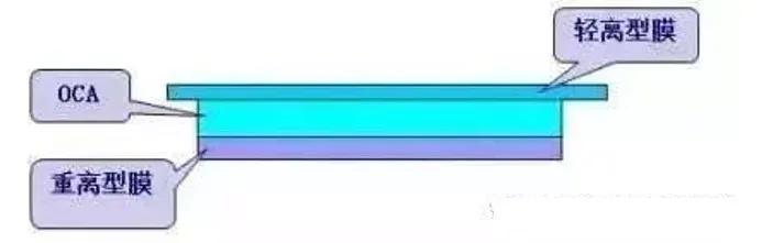 2. 重离型+ OCA胶+轻离型, 此工艺同样需要换膜, 只是少层保护膜,是目前常用的方式。