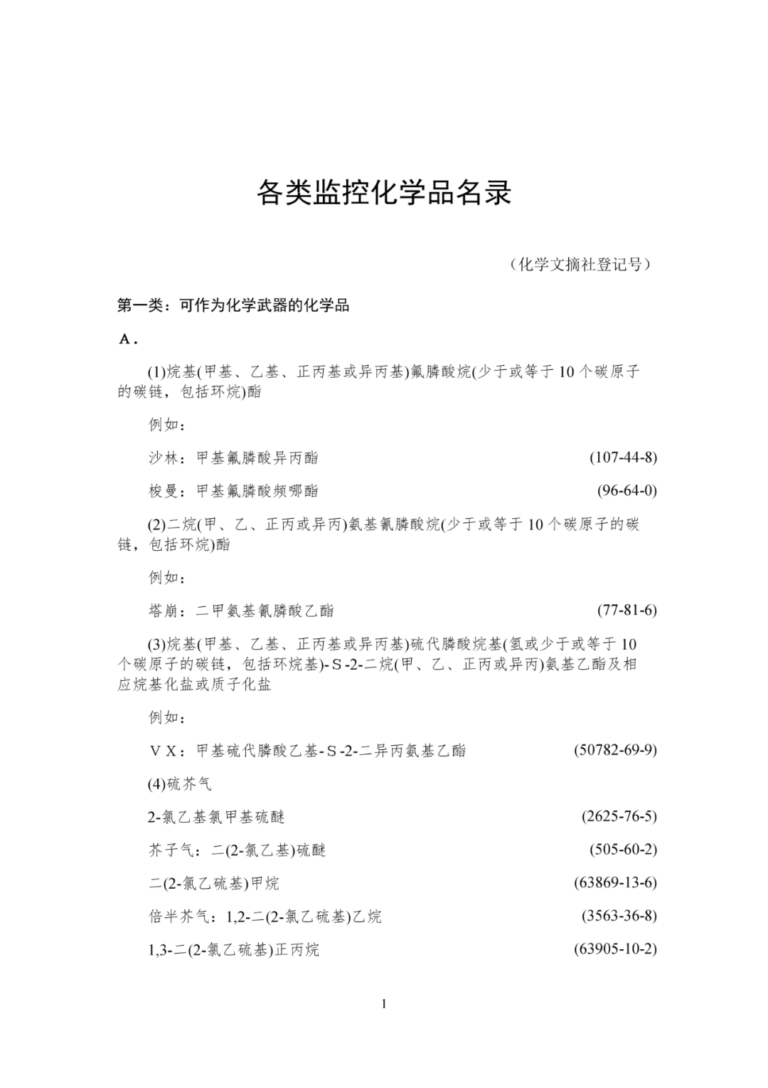 附件:各类监控化学品名录