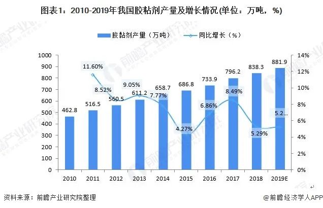 2、2019年我国胶粘剂消费量同比增长5.43%