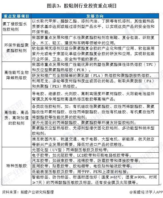 胶粘剂的快速发展,也离不开重点项目的开展,目前看,环保型胶粘剂、可降解型胶粘剂、功能性胶粘剂以及特种胶粘剂均为现阶段行业重点开发项目。