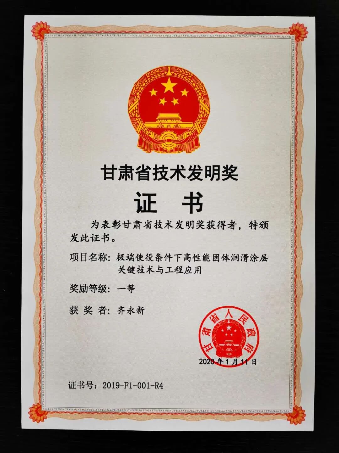 今年其与中科院共同研发的“极端使役条件下高性能固体润滑涂层关键技术与工程应用”项目获得甘肃省人民政府技术发明奖一等奖。