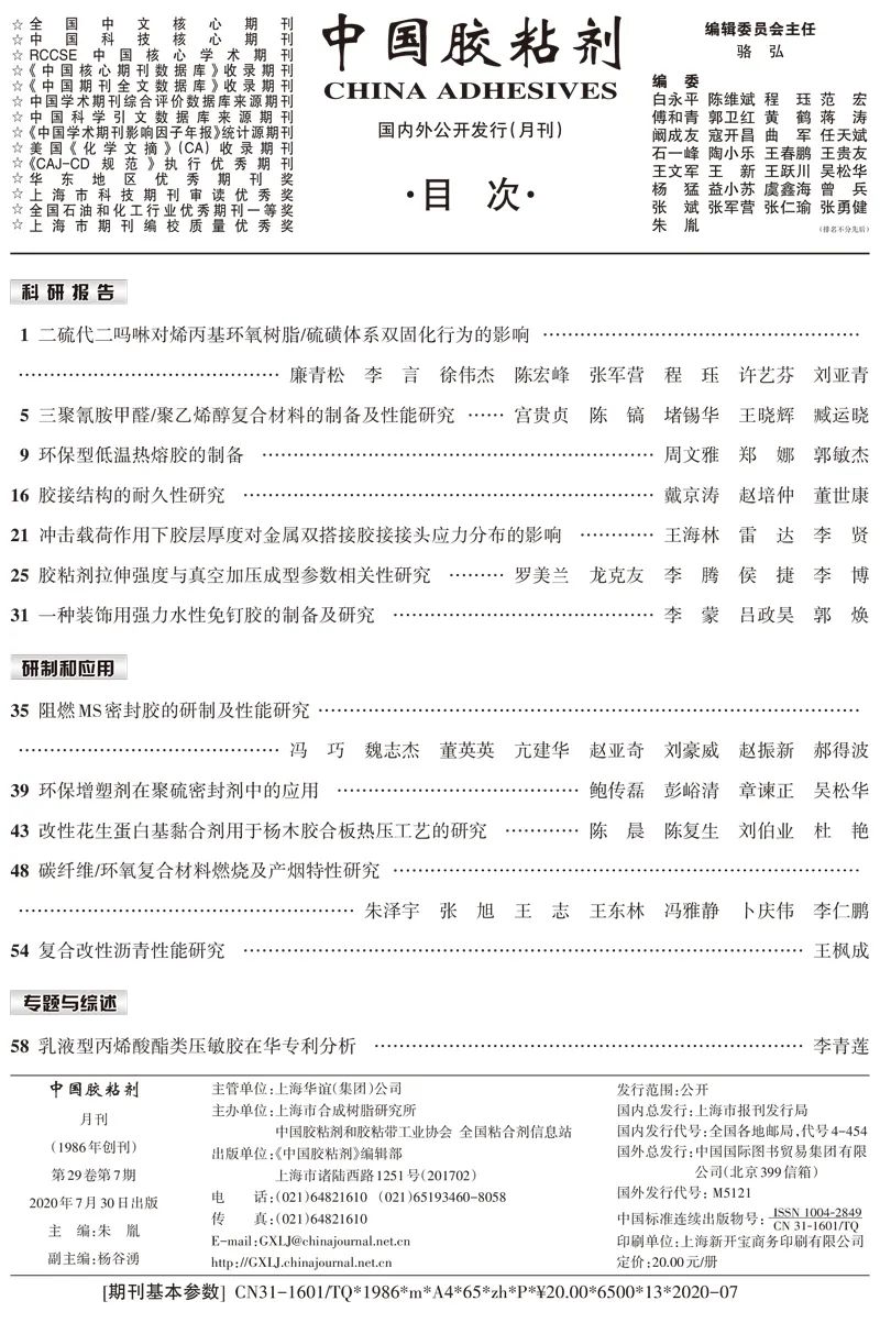 【摘 要】乳液型丙烯酸酯压敏胶由于成本低、污染小、易于加工、对大部分材料粘接性好,而成为目前应用范围最广、使用量最大的压敏胶产品。本文首先梳理了1985 ~2019年有关乳液型丙烯酸酯压敏胶技术在我国的专利申请量及结案情况;然后从单体改性、有机硅改性、互穿网络结构改性、交联剂改性、乳化剂改性、外加其他助剂改性以及复合改性七个方面分别列举了乳液型丙烯酸酯压敏胶的典型专利,以期展示乳液型丙烯酸酯压敏胶制造、生产、应用方面的最新进展。最后,对该领域的未来发展趋势进行了展望。