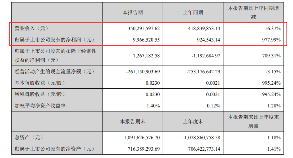 近日,宏达新材发布2020年半年度业绩报告。报告显示:2020年上半年宏达新材实现营业收入35,029.16万元,比去年同期减少6,854.83万元,同比下降16.37%;本期归属于上市公司股东净利润为996.65万元,比去年同期增加904.20万元,同比上升977.99%。